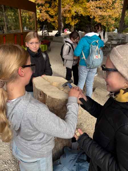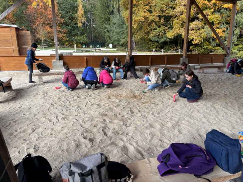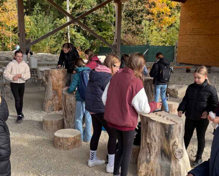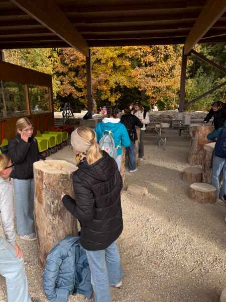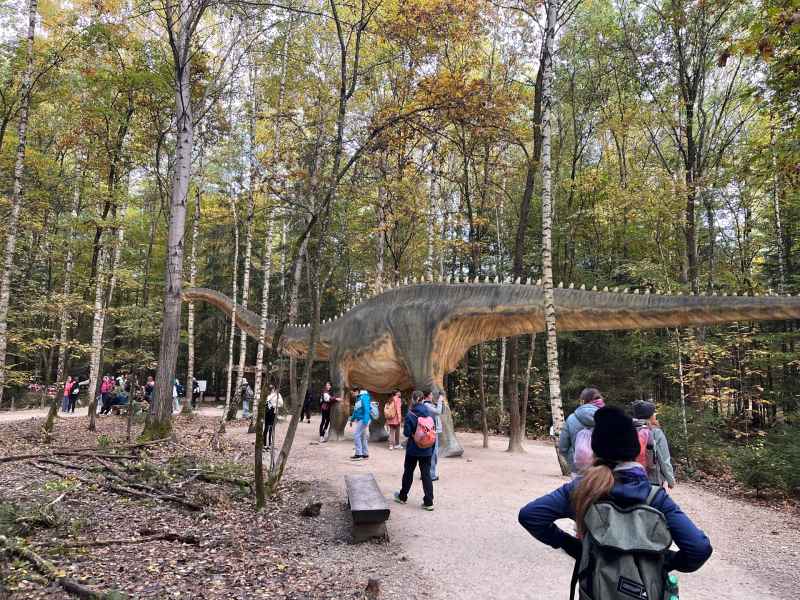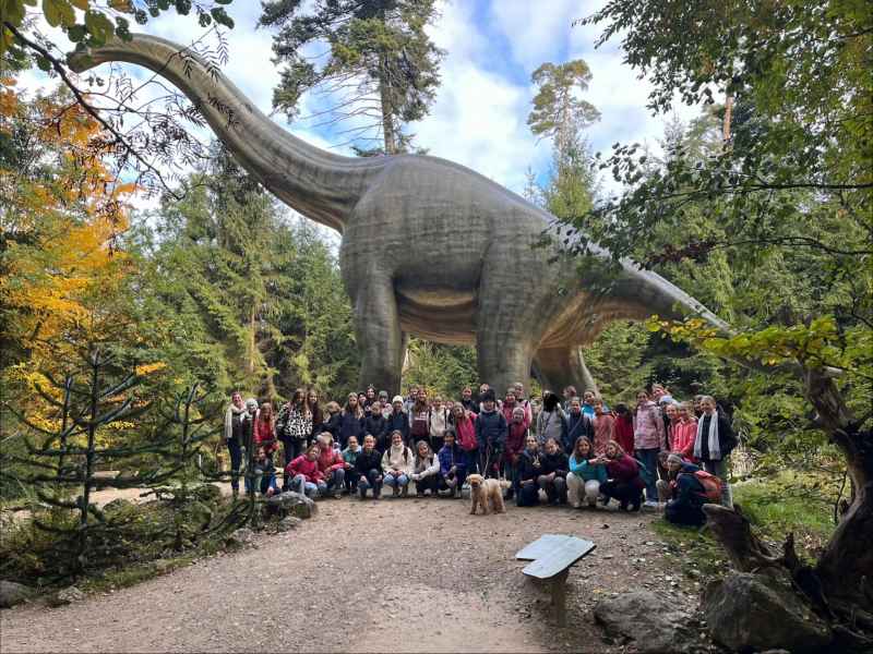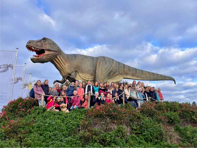65 neugierige Schülerinnen, ein fröhlicher Schulhund und jede Menge Dinosaurier – das kann nur eines bedeuten: Unser Ausflug in den Dinopark Denkendorf steht an!