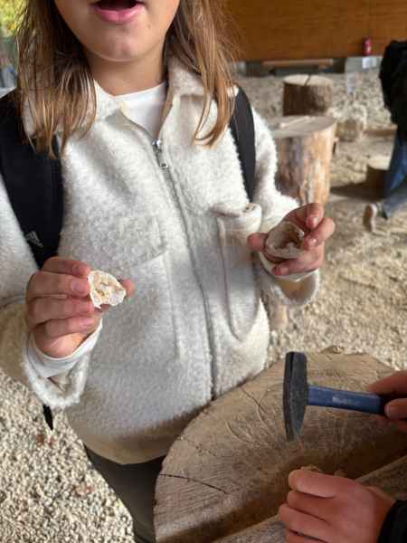 Besonders beliebt bei den Sechstklässlerinnen waren in diesem Jahr die Mitmachstationen „Schätze im Sand“, „Fossilien freilegen“ und „Kristalle entdecken“. Manche fanden wahre Schätze!